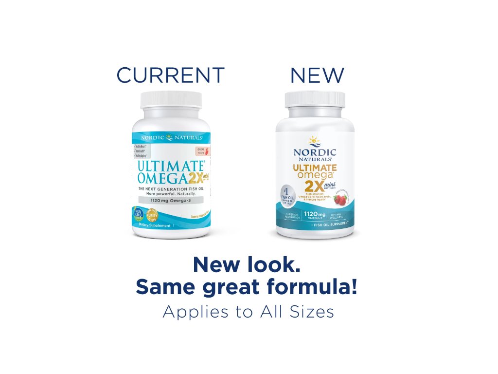 Ultimate Omega® 2X Mini balí obří porci omega-3 EPA a DHA do dvou mini měkkých gelů, které se snadno polykají a chutné žvýkají.