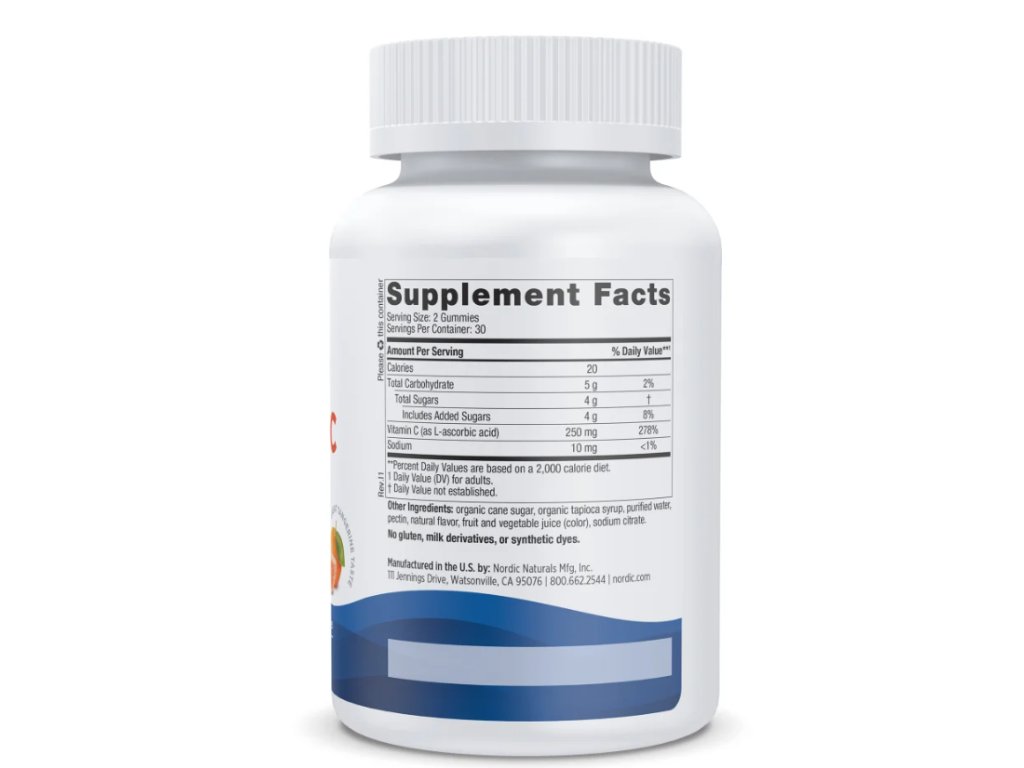 Nordic Naturals - Vitamín C 250mg, mandarinka, gumové bonbóny
