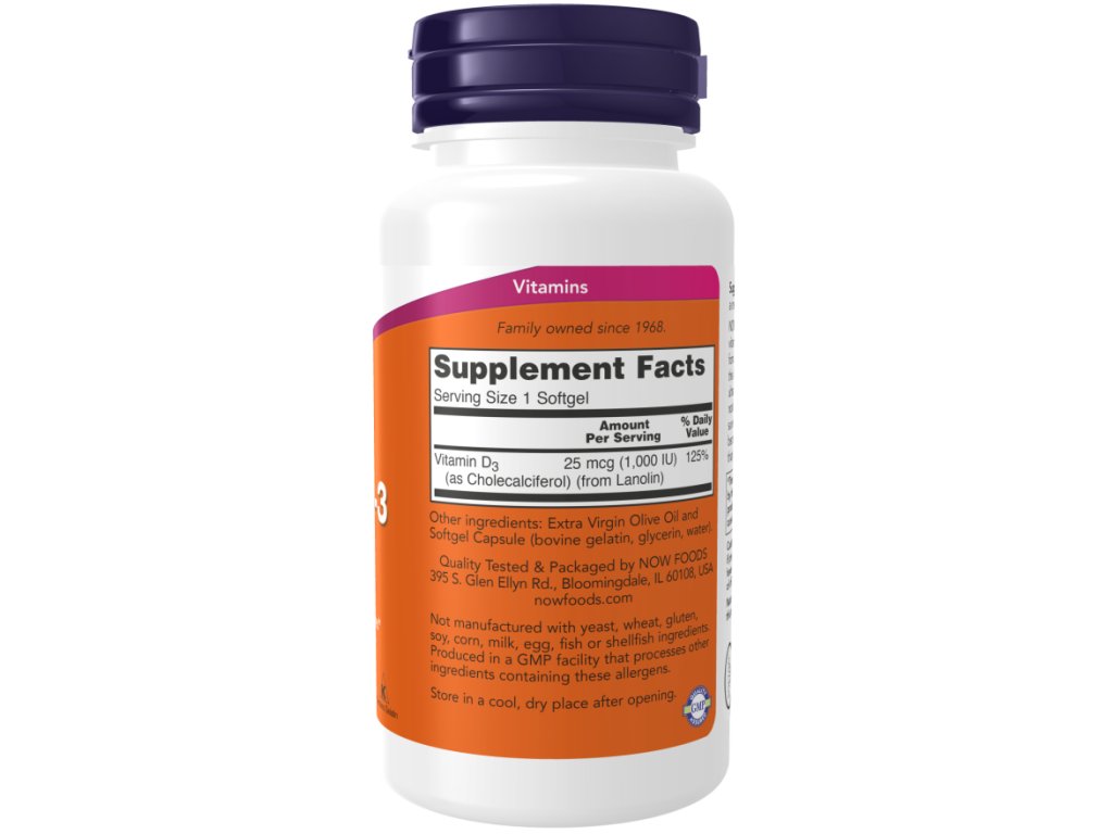 NOW Foods - Vitamín D-3 1000 IU, 180 softgel kapslí, doplněk stravy