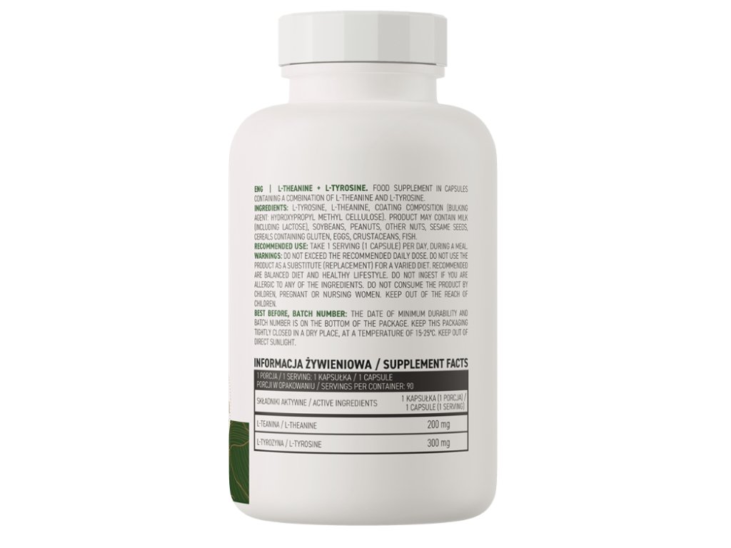 OstroVit Theanine + Tyrosine VEGE je veganský doplněk stravy v kapslích z HPMC (celulózy) obsahující směs dvou prokognitivních aminokyselin, L-tyrosinu a L-theaninu. Doplňky neobsahují plnící látky ani žádná živočišná aditiva.