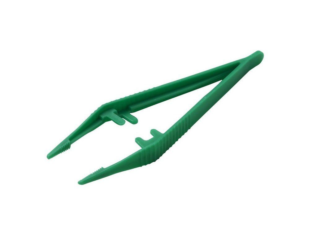 Plastová sterilní pinzeta 13 cm, ideální pro zdravotnictví i domácí použití. Jednorázová, zelená, s protiskluzovým úchopem.
