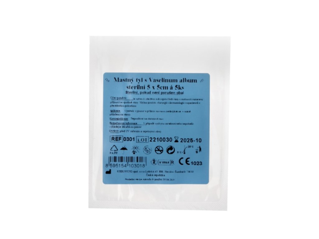 Tyl mastný Vaselinum album, sterilní 5 x 5 cm, 5 KS