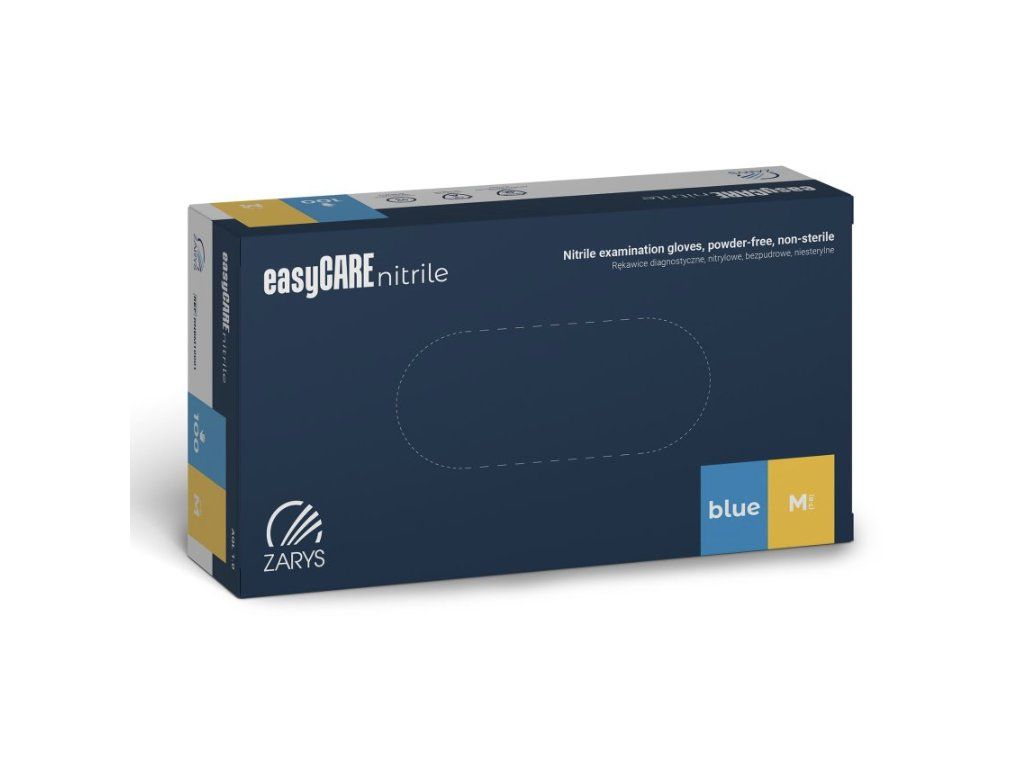 Nitrilové jednorázové vyšetřovací rukavice easyCARE bez pudru. Zajišťují spolehlivý úchop předmětů, jsou pružné a odolné. Rolovaná manžeta zajišťuje zachycení možných tekoucích kapek. Vhodné do zdravotnictví, potravinářství či průmyslu.