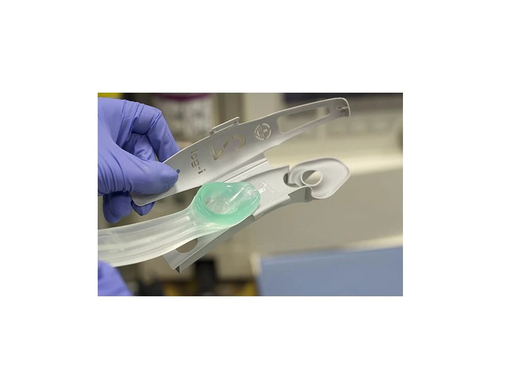 Supraglotická maska je vyrobena z lékařského termoplastického eleastomeru, který je měkký, gelový a průhledný.