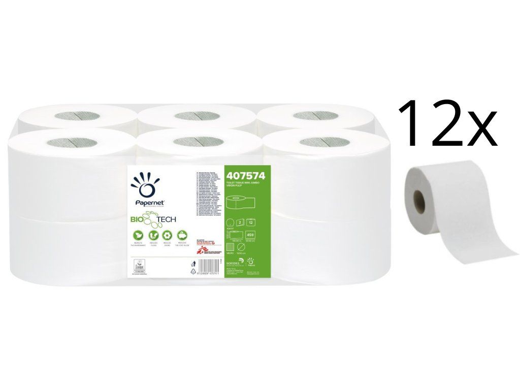 Toaletní papír PAPERNET BioTech JUMBO 190 2-vrstvá celulóza, průměr 19 cm návin 140 m - 12 rolí