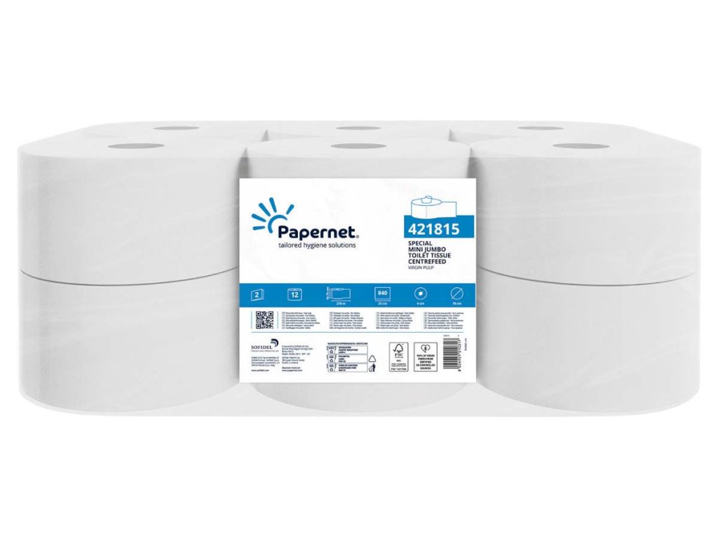 Toaletní papír Papernet Mini se středovým odvíjením celulóza | 12 rolí